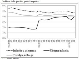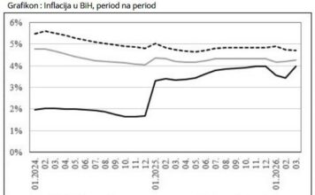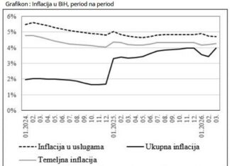 Centralna banka Bosne i Hercegovine (CBBiH) je procijenila godišnju temeljnu inflaciju za prva tri mjeseca 2026. godine na 4,27%. Godišnji rast prosječnih potrošačkih cijena...