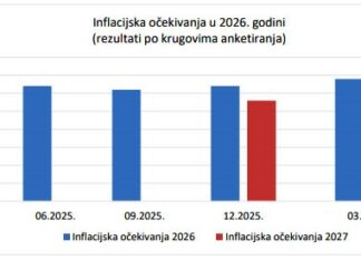Martovski krug ankete* Centralne banke Bosne i Hercegovine (CBBiH) ukazuje na blago povećanje očekivane inflacije za 2026. godinu, pri čemu projekcija iznosi 3,40%, što...