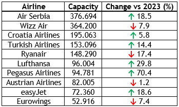 Brojni drugi aerodromi zabilježile su pad u odnosu na prošlu godinu, među kojima su Zadar, Niš, Split i Ohrid.