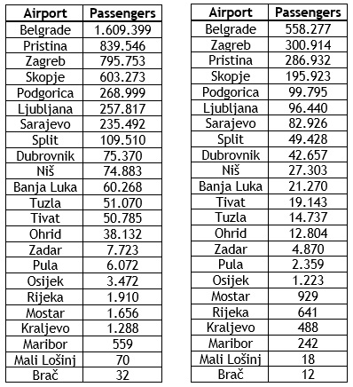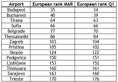 Tokom prvog kvartala ove godine, Beogradski aerodrom je rangiran kao 70. najprometniji aerodrom u Evropi, odmah iza Tuluza, Fuerteventure i Bazela, ali ispred Malte, Kelna i Rejkjavika. Priština se pozicionirala kao 102. najprometnija, iza Newcastlea, Stavangera u Norveškoj i Pisi, ali ispred Hanovera i Zagreba.