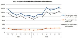 BiH: U julu prvi put registrovano 12.618 motornih vozila, rast 10,9%