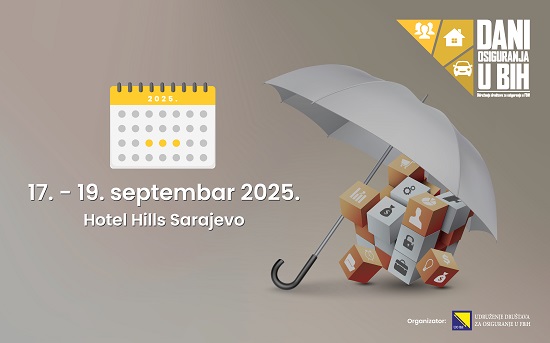 Udruženje društava za osiguranje u Federaciji BiH ovogodišnju konferenciju ‘Dani osiguranja u BiH’ organizira od 17. do 19. septembra u hotelu Hills u Sarajevu. Riječ je o najznačajnijem godišnjem okupljanju domaćih i regionalnih stručnjaka iz oblasti osiguranja, finansija, regulatornih tijela i akademske zajednice, s ciljem otvaranja dijaloga o najvažnijim temama koje oblikuju budućnost tržišta osiguranja u našoj zemlji i regiji.