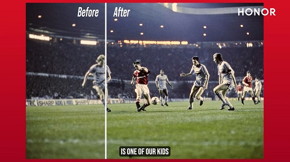 AI Upscale na HONOR Magic7 Pro obnovio je i unaprijedio više od 40 fotografija iz Old Trafford arhive, pretvarajući izblijedjele uspomene u vizuelno osvježene slike dostojne 21. vijeka, kako bi prikazala ovu tehnologiju i pokazala inovativno sponzorstvo kompanije Qualcomm Technologies sa klubom u stvaranju jedinstvenih iskustava za navijače sa svojim partnerima.