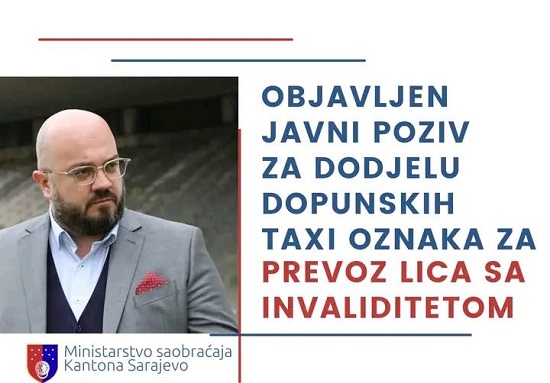 Na web stranici Ministarstva saobraćaja Kantona Sarajevo danas je objavljen javni poziv putem kojeg će se dodijeliti šest dopunskih taxi oznaka za prevoz osoba sa invaliditetom.