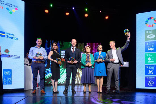 Na svečanosti održanoj jučer u Pozorištu mladih u Sarajevu, promovisana je peta, jubilarna generacija biznis lidera održivog razvoja u BiH. Ova nagrada se dodjeljuje u sklopu programa ‘Okvir za realizaciju Ciljeva održivog razvoja (SDGs) kao temelj za održiv i inkluzivan rast u Bosni i Hercegovini’ (SDG2BIH), zajedničke inicijative koju finansira Švedska, a implementira UNDP u partnerstvu sa UNICEF-om i UN Women kao dio podrške UN-a vlastima u BiH pri implementaciji Okvira za realizaciju Ciljeva održivog razvoja u BiH.