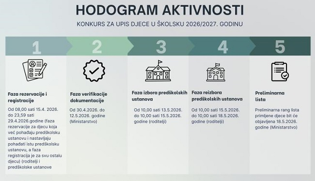Za lakše snalaženje kroz cijeli proces, pripremljeni su i hodogrami aktivnosti, kroz koje su jasno prikazani svi koraci upisa, od registracije do konačnog upisa djece u predškolske ustanove.