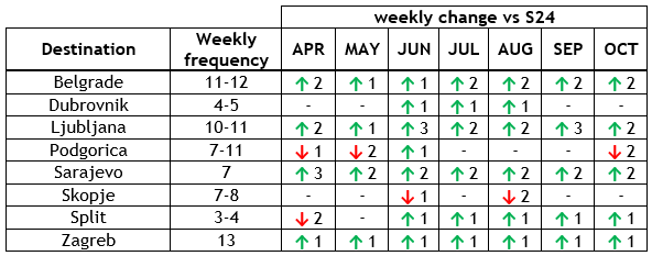 Usluge za Sarajevo, koje su podložne subvencijama lokalne turističke uprave, također će rasti između dva do tri puta sedmično za dnevnu rotaciju.