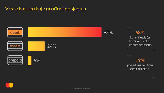 MasterIndex pokazuje da je za 9% porastao broj korisnika koji se izjasnio kako je koristio karticu u proteklih sedam dana i on sada iznosi 70%. Kada je riječ o tome gdje se najčešće koriste kartice i dalje su to najčešće supermarketi i hipermarketi, gdje karticama plaća 7 od 10 korisnika. Na listi se nalaze i butici (51%), benzinske pumpe (49%), male trgovačke radnje (37%), prodavnice namještaja i tehnike (27%), dok 24% ispitanika karticama plaća račune.