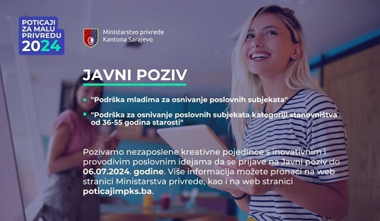 Ministarstvo privrede Kantona Sarajevo objavilo je danas dva javna poziva po programima razvoja male privrede.