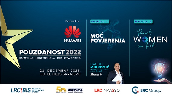 Zadnji mjesec u godini najčešće je vrijeme kada se svode računi, poslovni i životni, donose odluke kojih se namjeravamo držati u godini koju iščekujemo, ali je i tradicionalno mjesec kada se uspješni poslovni ljudi druže na konferenciji Pouzdanost 2022, koju osmu godinu zaredom organizuju bonitetna agencija LRC BIS sa Poslovnim novinama i LRC Inkasso (koje zajedno čine LRC Group), u partnerstvu sa Huawei Technologies d.o.o. Sarajevo.