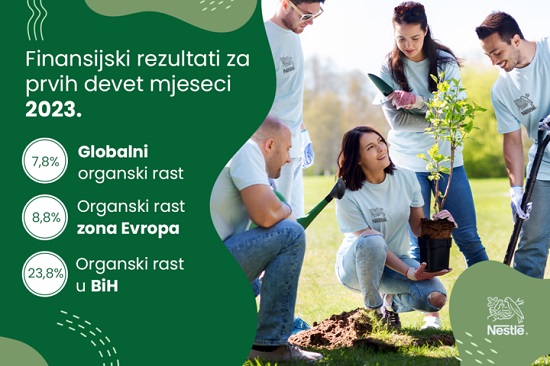Nestlé, najveća prehrambena kompanija na svijetu, objavila je rezultate poslovanja za prvih devet mjeseci 2023. godine. Organski rast kompanije dosegao je 7,8%, dok su cijene dosegnule 8,4% sa stvarnim internim rastom (RIG) od -0,6%. Rast je zabilježen kroz veliki broj geografija i kategorija.