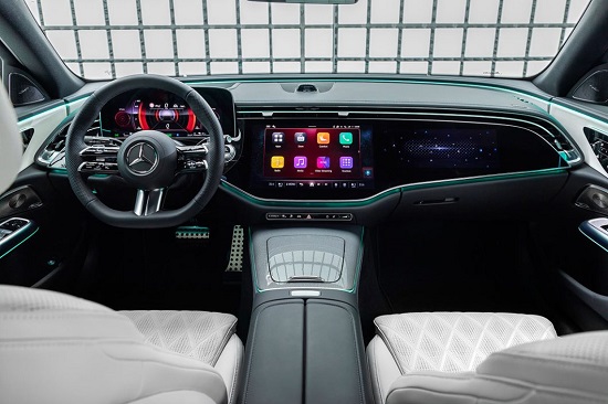Mercedes je odlučio novom E-klasom više se približiti i novim, mlađim generacijama kupaca. Osim središnjeg zaslona od 14,4 inča, tu su i po jedan ispred vozača i suvozača od 12,3 inča. Oni donose grafiku slučnu onom na mobilnim uređajima, a sa kojima se i lagano povezuje. Opremljen je 5G modulom, a zanimljivost je i što se može koristi i digitalni ključ. Uz iPhone ili Apple Watch može se vozilu pristupiti bez fizičkog ključa. Može prepoznati čak 16 različitih korisnika koji koriste Digital Vehicle Key.