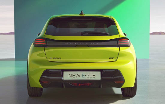 Novi E-208 donosi novi dizajn prepoznatljivog stražnjeg svjetlosnog potpisa Marke koji čine tri okomite crvene linije u obliku pandži koje su sada vodoravno postavljene. Čine ih tri elegantne LED linije koje vizualno proširuju crnu letvicu u području poklopca prtljažnika te tako tvore upečatljiviji, naizgled širi izgled stražnjeg kraja. U inačici GT, svjetla za vožnju unatrag i pokazivači smjera također su izvedeni u LED tehnologiji.