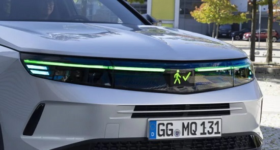 Nadalje, mali zaslon koji inače prikazuje Opelov logo prikazuje znak upozorenja ili pješaka uz gestu zaustavljanja. Kada se automobil zaustavi, LED elementi postaju zeleni, a zaslon prikazuje hodajuću figuru pješaka i signal pješaku da je sigurno prijeći cestu. U složenijim situacijama kada algoritam umjetne inteligencije ne može shvatiti što učiniti, vozač se poziva da preuzme kontrolu nad vozilom.