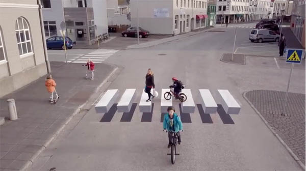 Islandsko mjestašce Isafjerdir pribjeglo je kreativnom rješenju za pješački prelaz na ulici: napravili su zebru koja vozačima izgleda kao da je veća prepreka tako da automatski koče.