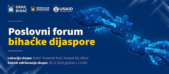 Grad Bihać organizuje Poslovni forum bihaćke dijaspore i privrednika pod nazivom ‘Uspješna priča i izvor napretka’, koji će se održati 26. decembra 2024. godine u hotelu ‘Kostelski buk’. Uspostavljanje dugoročne saradnje s dijasporom biće u fokusu foruma. Glavna tema foruma je ‘Kako uspostaviti uspješnu i dugoročnu saradnju s dijasporom’. Na ovom događaju će se predstaviti uspješne investicije dijaspore u Bihaću, kao i mogućnosti i olakšice koje Grad nudi potencijalnim investitorima iz dijaspore i lokalne zajednice.