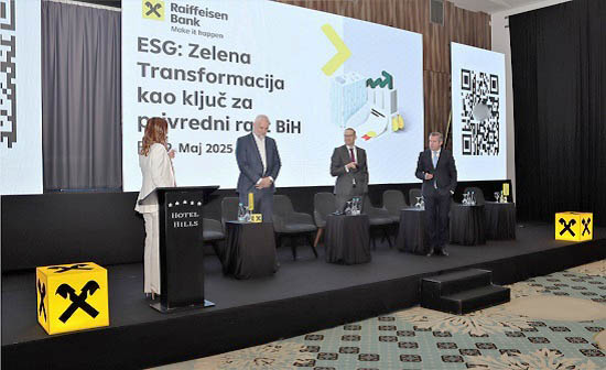 Uspješnom organizacijom ove konferencije, Raiffeisen banka je potvrdila svoju posvećenost održivom rastu i podršci zelenoj tranziciji kroz inovativna finansijska rješenja i strateška partnerstva. ESG principi su integralni dio poslovne strategije Raiffeisen banke, osiguravajući pozitivan doprinos ekonomiji i društvu kroz pružanje konkretnih rješenja za klijente u rješavanju stvarnih izazova u zelenoj tranziciji.