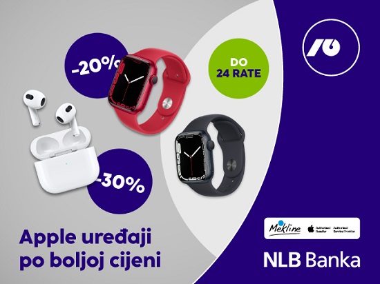 NLB Banka Sarajevo je, u suradnji sa Mekline-om, autoriziranim prodavačem Apple proizvoda, omogućila svim ljubiteljima ovoga brenda popust na najnovije uređaje svjetski renomiranog proizvođača.