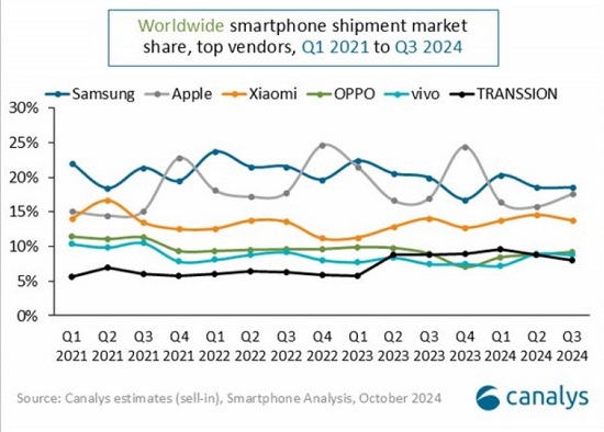 Prema novom izvještaju Canalysa o globalnom tržištu pametnih telefona u trećem kvartalu 2024. godine, isporuke su zabilježile rast kako na godišnjem, tako i na kvartalnom nivou. Analitičari navode da je glavni pokretač bio ciklus zamjene uređaja od jula do septembra, dok je konkurencija postala oštrija nego ikad.