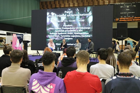 Panelistice Emina Nizić iz Turističke zajednice Kantona Sarajevo, predsjednica Udruženja turističkih privrednika BiH Edina Zagora i Sumejja Spahović Avdić, vlasnica Ayemus toursa, startupa osnovanog kroz program Ministarstva privrede KS za podršku mladima za osnivanje vlastitih biznisa, govorile su o potencijalima specifičnih grana turizma koje KS može iskoristiti kao specifičnost i komparativnu prednost u odnosu na regiju.