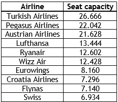 Najveće aviokompanije po kapacitetu sjedišta, april 2024.