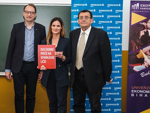 Ovim povodom, predsjednik Uprave Sparkasse Banke dr.sc. Amir Softić i prof.dr.sc. Željko Šain održali su gostujuće predavanje na Ekonomskom fakultetu u Bihaću koje je ispred fakulteta upriličila prof. dr. sc. Dijana Vuković. Sa studentima su podijelili znanje o makroekonomskim trendovima, bankarskoj regulaciji i njenom uticaju na poslovni ciklus.