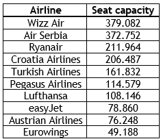 Beogradski aerodrom ima najviše slobodnih mjesta (722.320) na redovnim letovima u martum što je povećanje od 0,2% u odnosu na 2024. godinu. Wizz Air ostaje glavni krivac za spor rast, međutim, odsustvo British Airwaysa, kao i dnevni, a ne deset sedmičnih letova Qatar Airwaysa imat će utjecaja. Air Serbia će nastaviti da održava svoju poziciju najvećeg avioprijevoznika, držeći 50,2% svih raspoloživih redovnih kapaciteta na aerodromu.