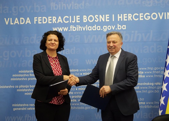 Federalni ministar razvoja, poduzetništva i obrta, Amir Zukić, i rezidentna predstavnica Razvojnog programa Ujedinjenih nacija (UNDP) u BiH, Steliana Nedera, danas su u sjedištu Vlade FBiH u Sarajevu potpisali Sporazum o provedbi aktivnosti usmjerenih na jačanje usluga poslovne podrške, koje se realizuju u okviru projekta ‘Boljom upravom do bržeg ekonomskog rasta (EGG2)’.